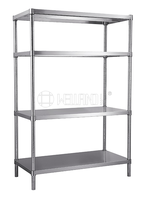 不銹鋼平板四層貨架是載重大,可調節,可拆卸,多配件組合,為每個場地組合提供不同功能的儲物方案。應用于酒店餐廳后廚,學校員工飯堂廚房等,存放食品食材,以及家用電器等。